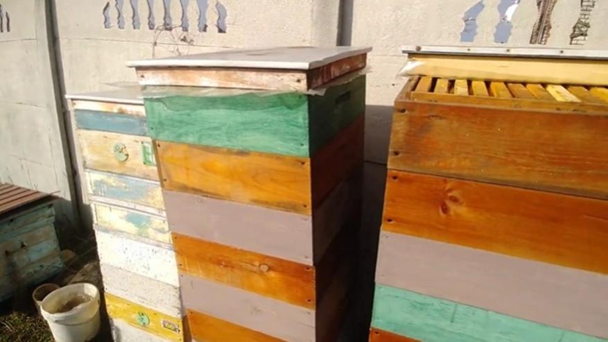 Je to blízko, snadné, pohodlné. Pokud něco, jsou vždy po ruce. Tyto budovy jsou samozřejmě již staré, ale nejdůležitější podmínkou je, že zvenčí možná nevypadají moc dobře, ale uvnitř jsou naprosto neporušené. To znamená, že každá budova je bez přístupu včel, vos a hlavně myší. Vchody jsou zavřené a žádné myši, včely ani vosy se dovnitř nedostanou. Budovy stojí na dřevěných paletách, na cihlách v rozích spodní budovy. Na nejspodnější korpus je místo dna připevněna jemná síťovina o velikosti ok 3-5 mm.