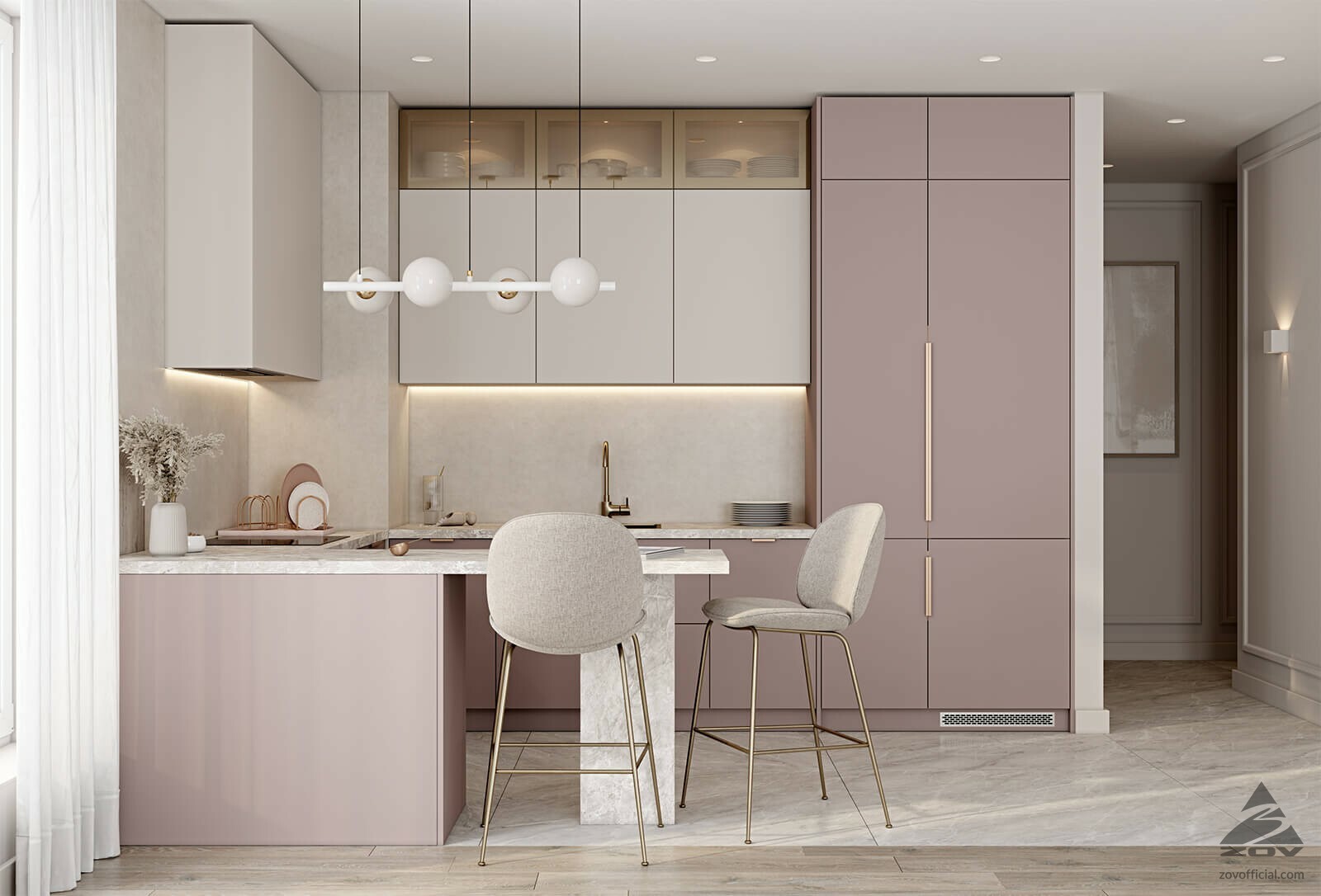 Jednotka umístěná v blízkosti dveří pomáhá zónovat kuchyň a tvoří přepážku. Můžete postavit výklenek, odstranit dveře, rozšířit průchod a vizuálně zvětšit kuchyňský prostor.
