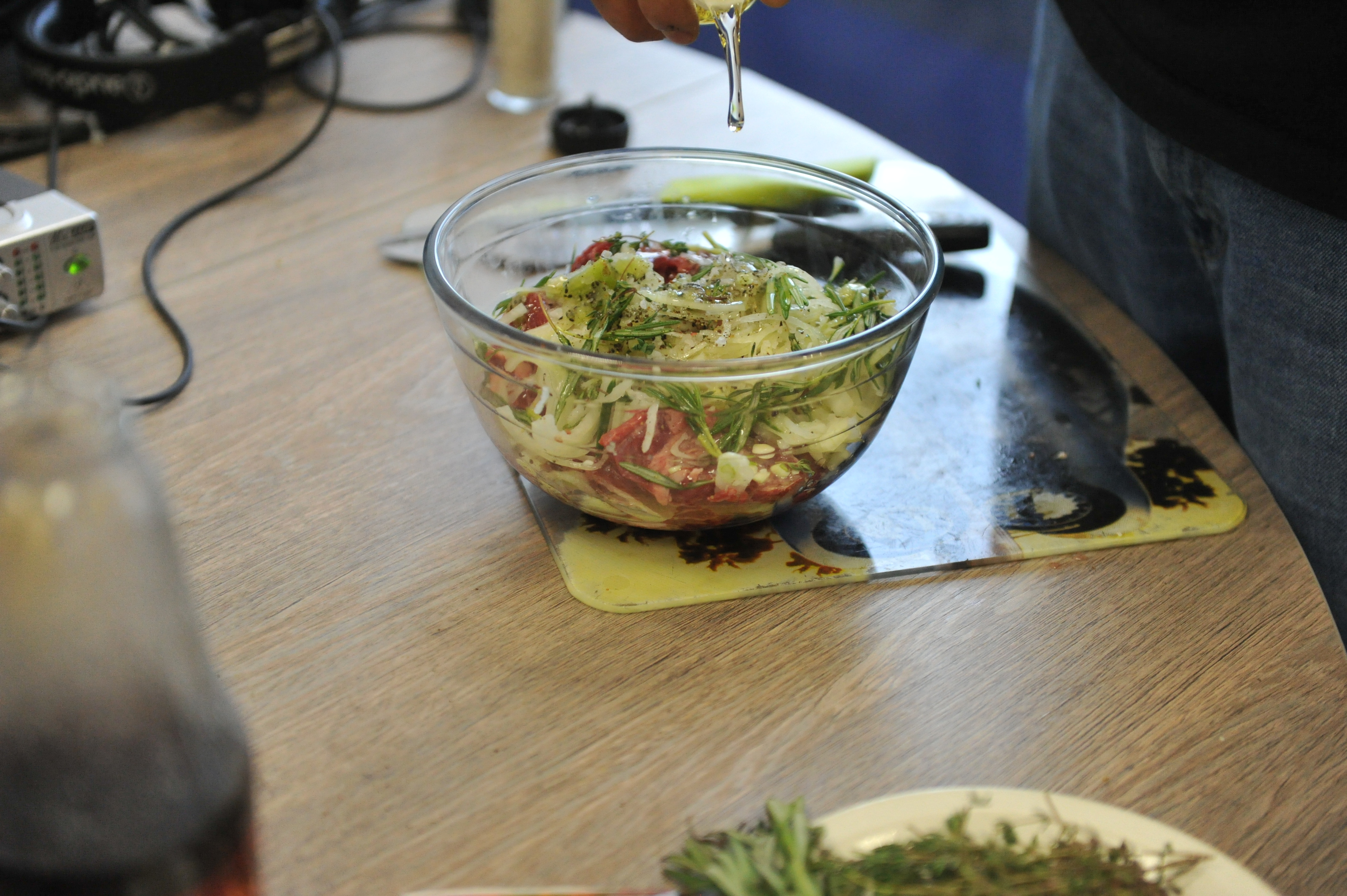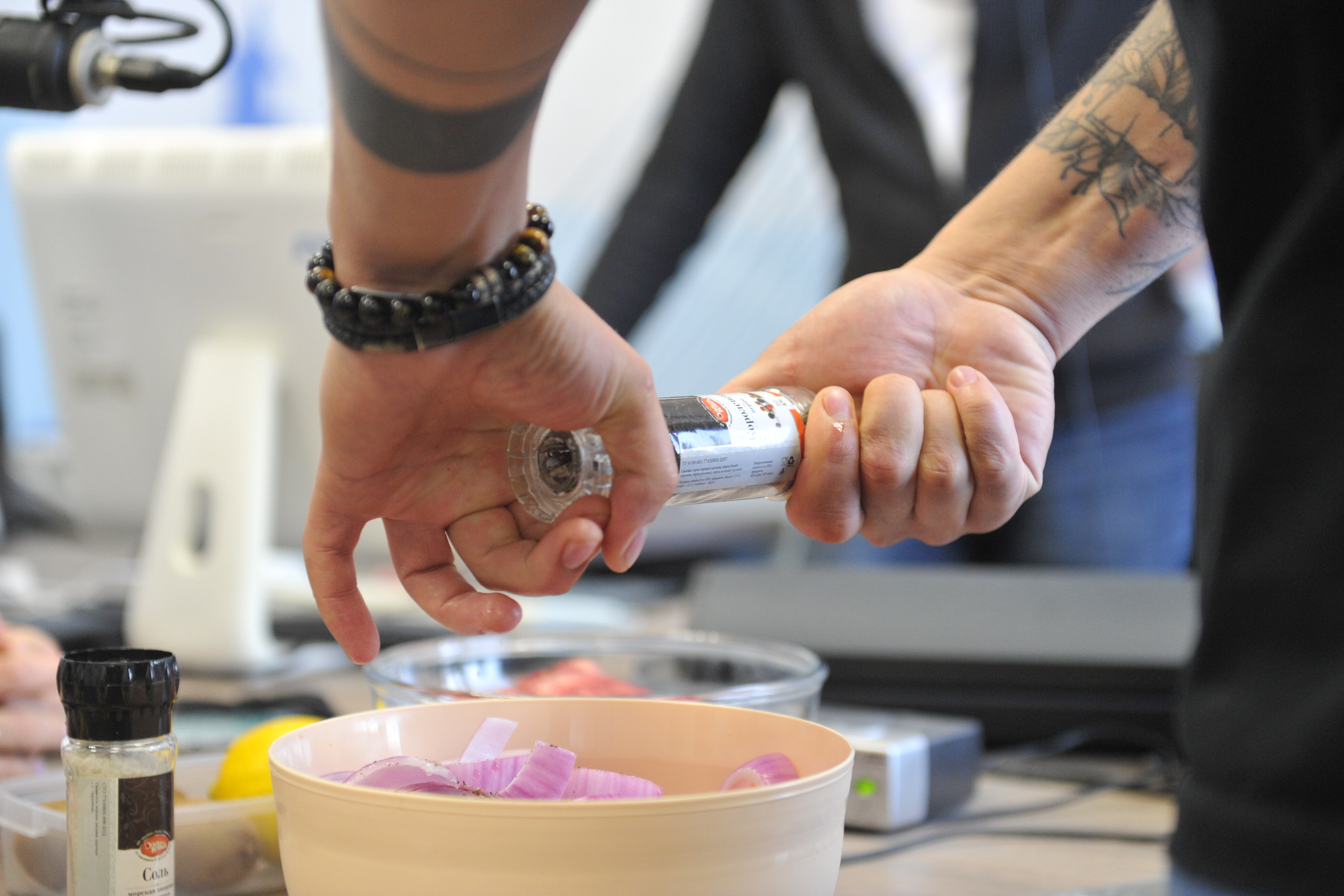 Valery Bogatyrev ukázal, jak přistupovat ke kousku vepřového a hovězího masa, aby bylo velmi chutné. Nejprve se kuchař dal do práce s vepřovým. Řezání začíná odstraněním fólie. Jak radil Valery, při přípravě vepřové krkovice byste měli nechat husté kousky tuku. Pod palbou se roztaví a potěší vás svou šťavnatostí. Kusy by měly být velké přibližně 5 x 5 centimetrů. Maso tak neztratí šťávu. Není třeba řezat specifickým způsobem, například napříč zrnem.