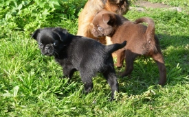 Zůstala dvě štěňata. Dívka je Belgičanka, chlapec Brabançon. Dívka je výborná, s bojovným duchem.
