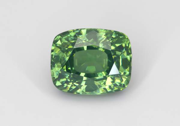 Vzácný přírodní zelený polštářkový broušený zirkon 8,50 karátů, Tanzanie
